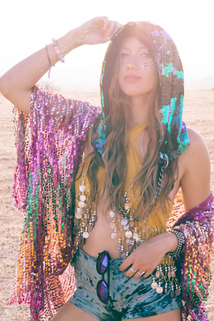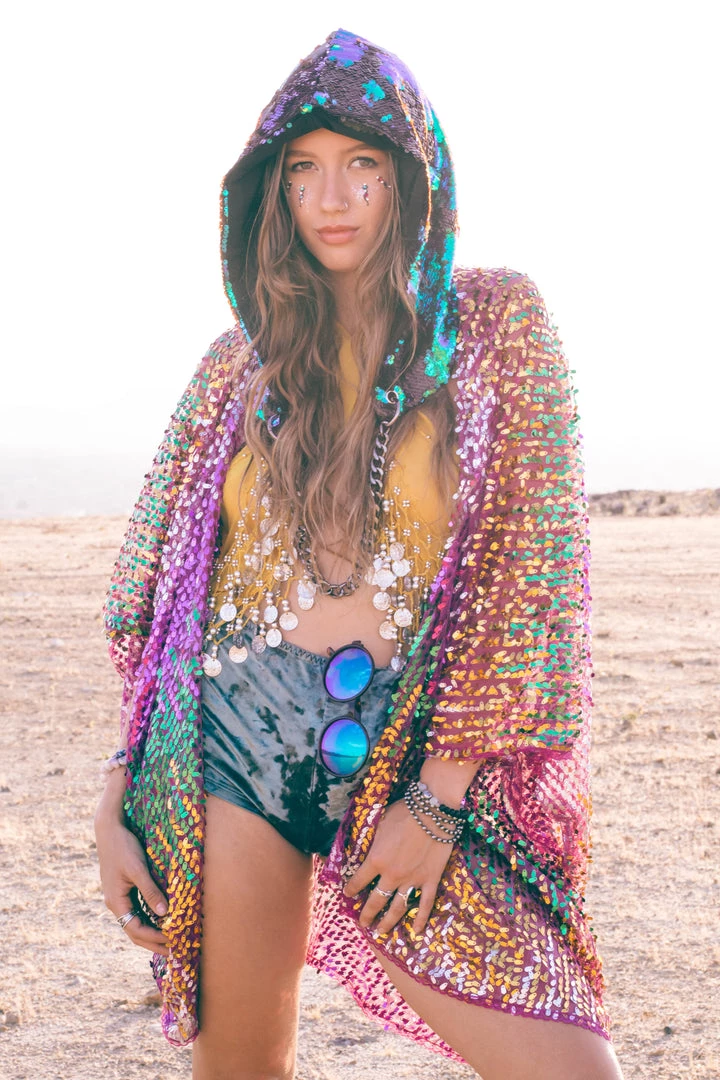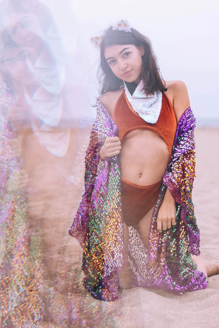 Dance the night away in this mermaid sequin kimono. Each individual sequin reflects the light to shine in every direction. We want you to be the center of attention- that why we ensure the sequins and fabric are of the highest premium material. Exclusively designed and handmade in the USA.Â