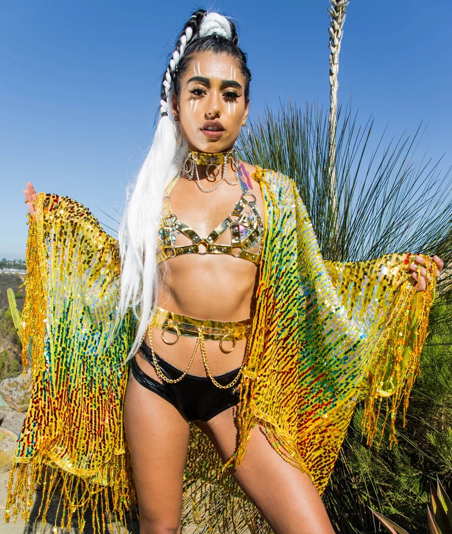 Dance the night away at the palace in this sequin kimono. Each individual sequin reflects the light to shine in every direction. We want you to be the center of attention- that why we ensure the sequins and fabric are of the highest premium material. Exclusively designed and handmade in the USA.