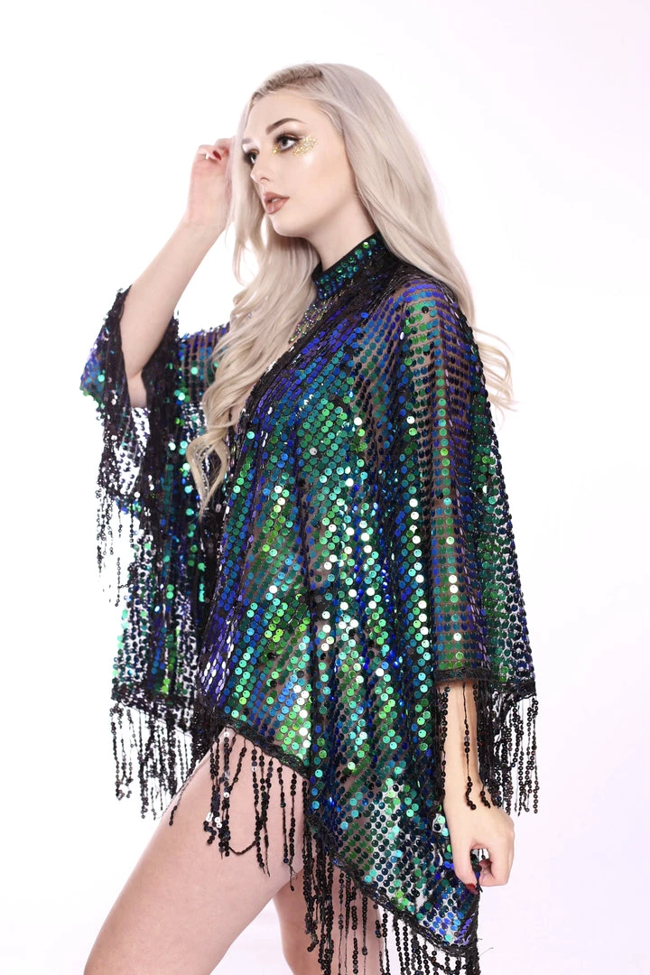 Dance the night away in this emerald green sequin kimono. Each individual sequin reflects the light to shine in every direction. We want you to be the center of attention- that why we ensure the sequins and fabric are of the highest premium material. Exclusively designed and handmade in the USA.