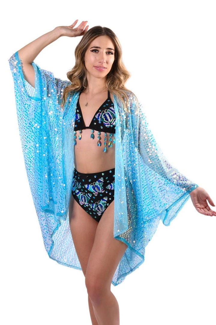 - This iconic butterfly look contains our beloved hand stitched butterfly set and our aqua sequin kimono. Made of the highest quality sequins and premium fabrics that glisten under the light.