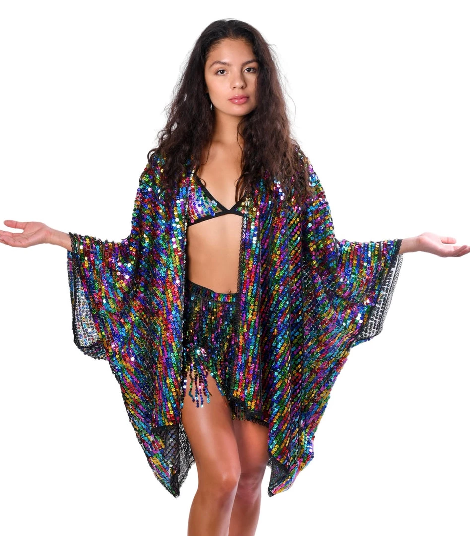 Dance the night away in this rainbow sequin kimono. Each individual sequin reflects the light to shine in every direction. We want you to be the center of attention- that why we ensure the sequins and fabric are of the highest premium material. Exclusively designed and handmade in the USA.