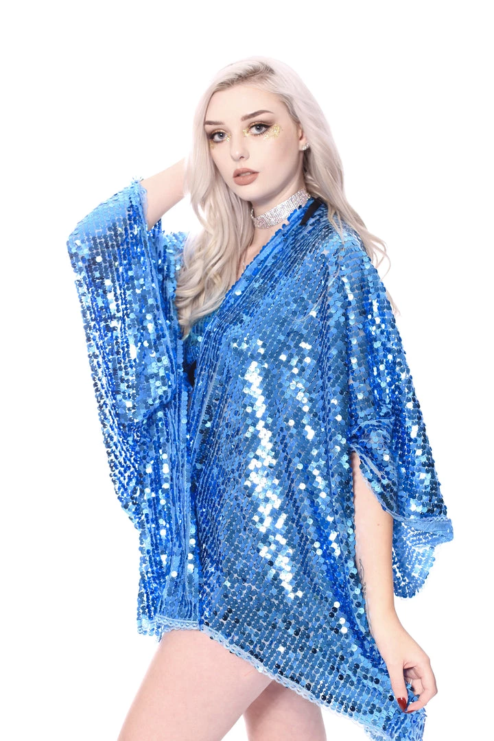 Dance the night away in this sky blue sequin kimono. Each individual sequin reflects the light to shine in every direction. We want you to be the center of attention- that why we ensure the sequins and fabric are of the highest premium material. Exclusively designed and handmade in the USA.