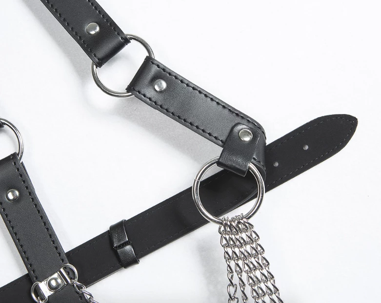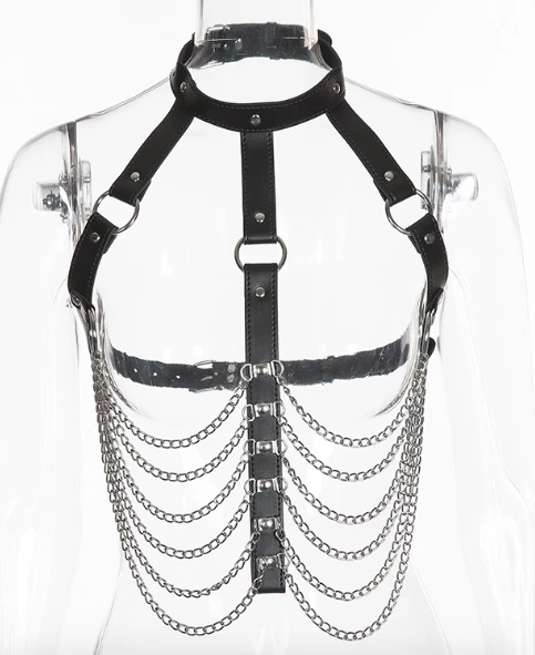 The body harness is made of vegan leather & chains. We make sure that no animals are hurt during the production. Harness is ONE SIZE fits all, comfortably adjust at neck & back. Style with bra/halter tops, or even just the pasties. Go get LIT. Perfect for party wear, costumes, festival clothing, festival fashion, rave wear, & EDM outfits, etc.