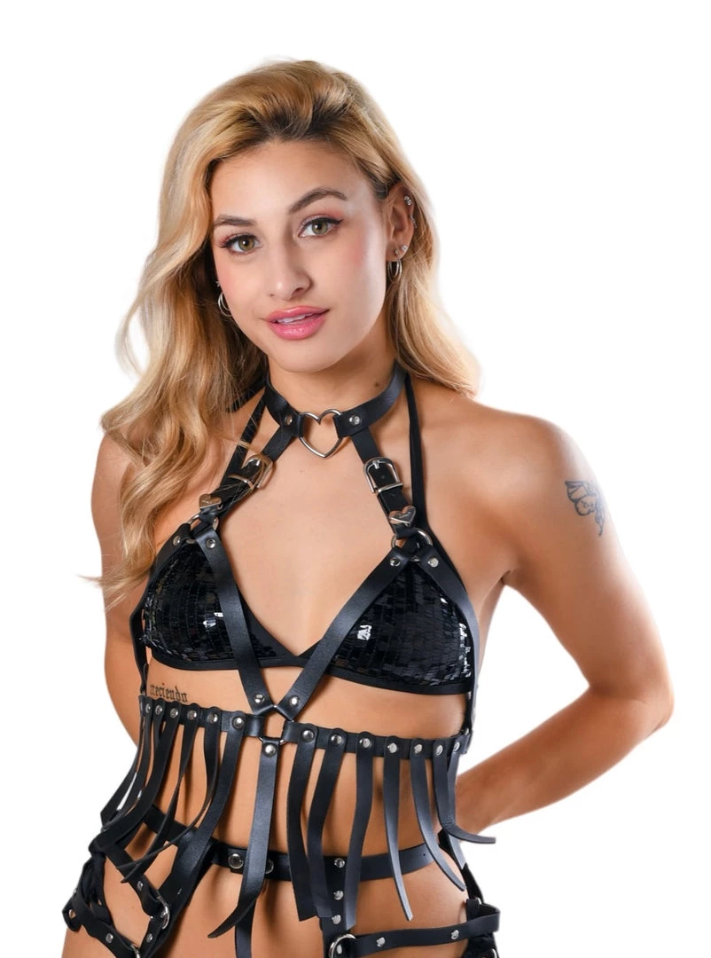 THE LUMI SHOP Black Heart Harness Fringe Top