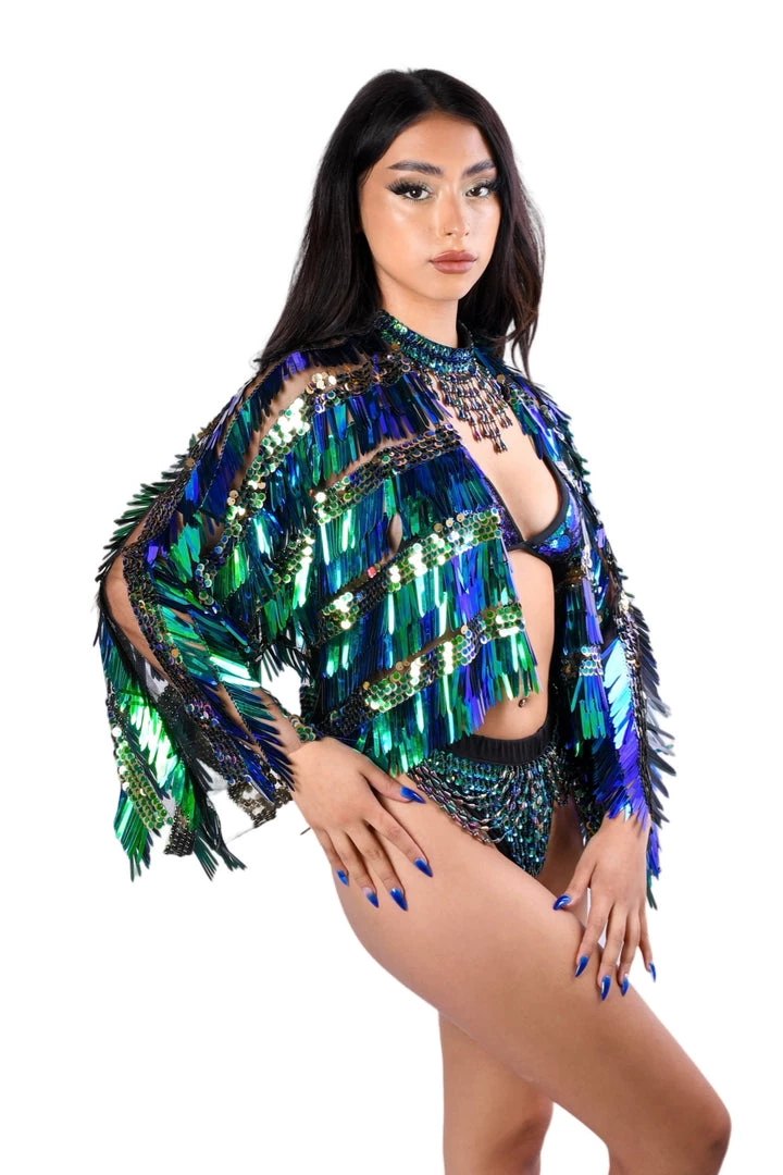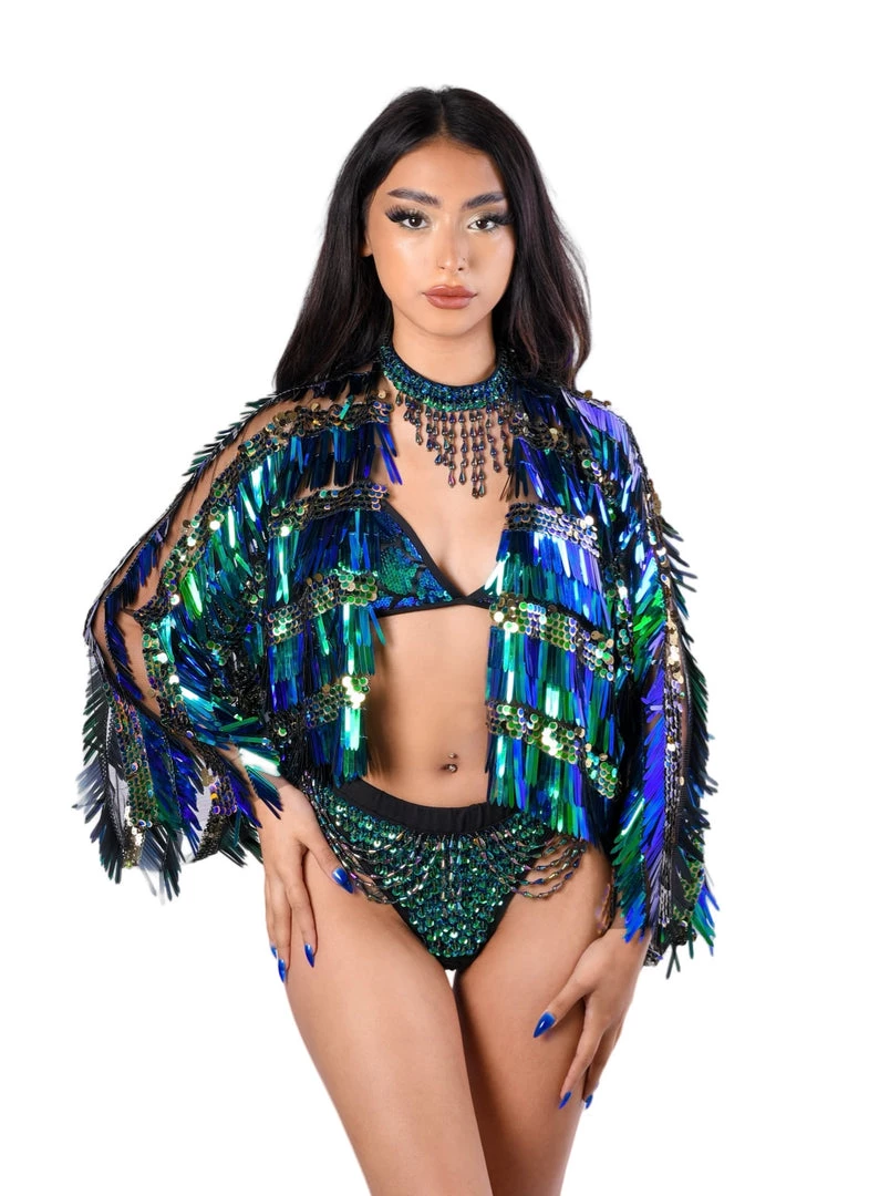 This cropped jacket is made of high quality sequins. It comes with super soft inner layer so you can be comfortable while stylist. Super sparkle both during the day and night. Pair with any styles.