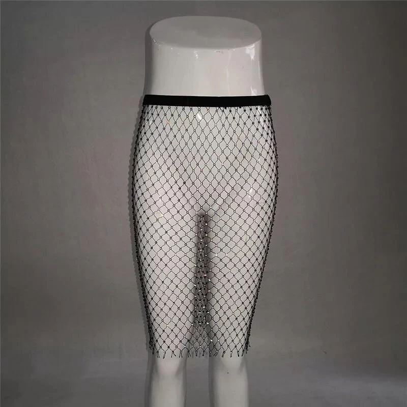 This crystal black fishnet mesh dress is the most trendy style this summer. It is made of high quality black fishnet mesh & crystals by hand. It is super sparkle both during the day & night. The dress is one size fits all with very stretchy fabric that will amaze everyone.