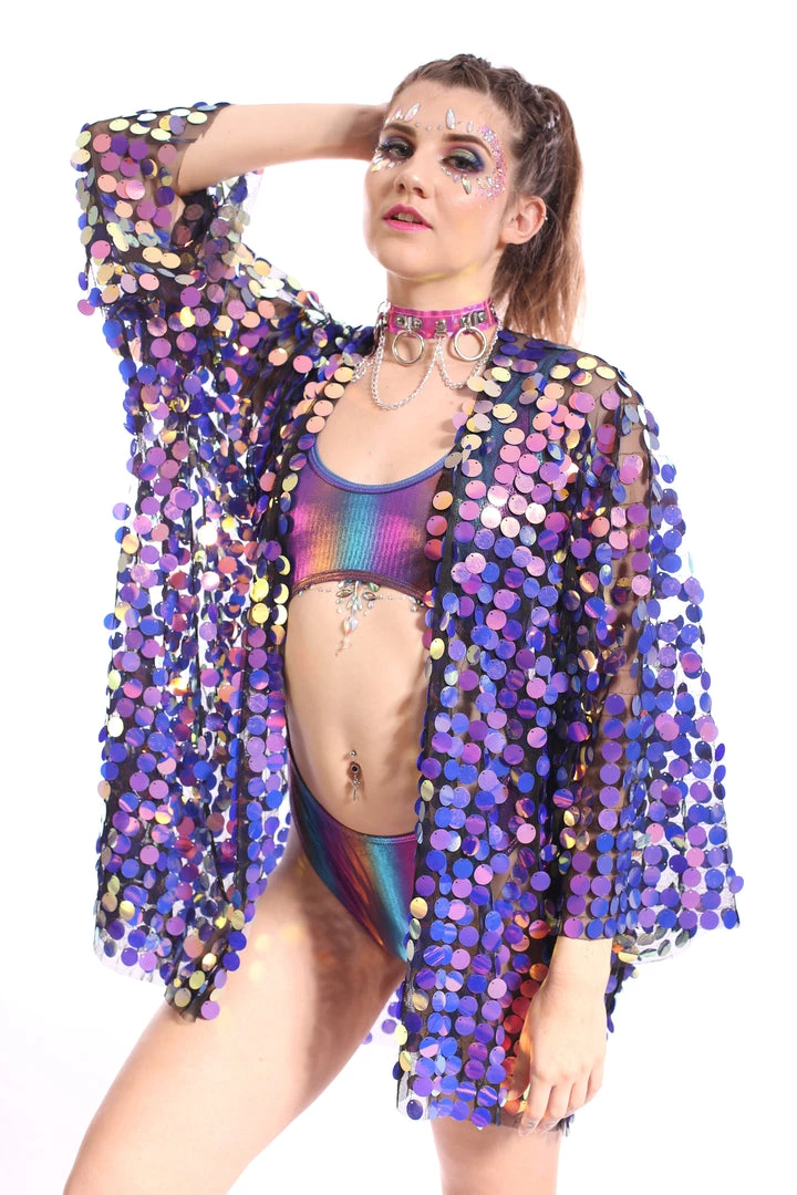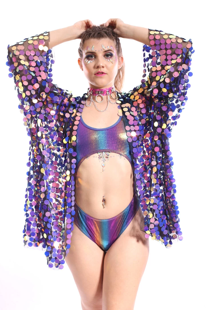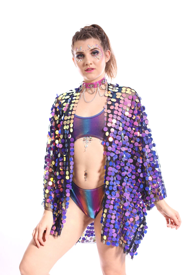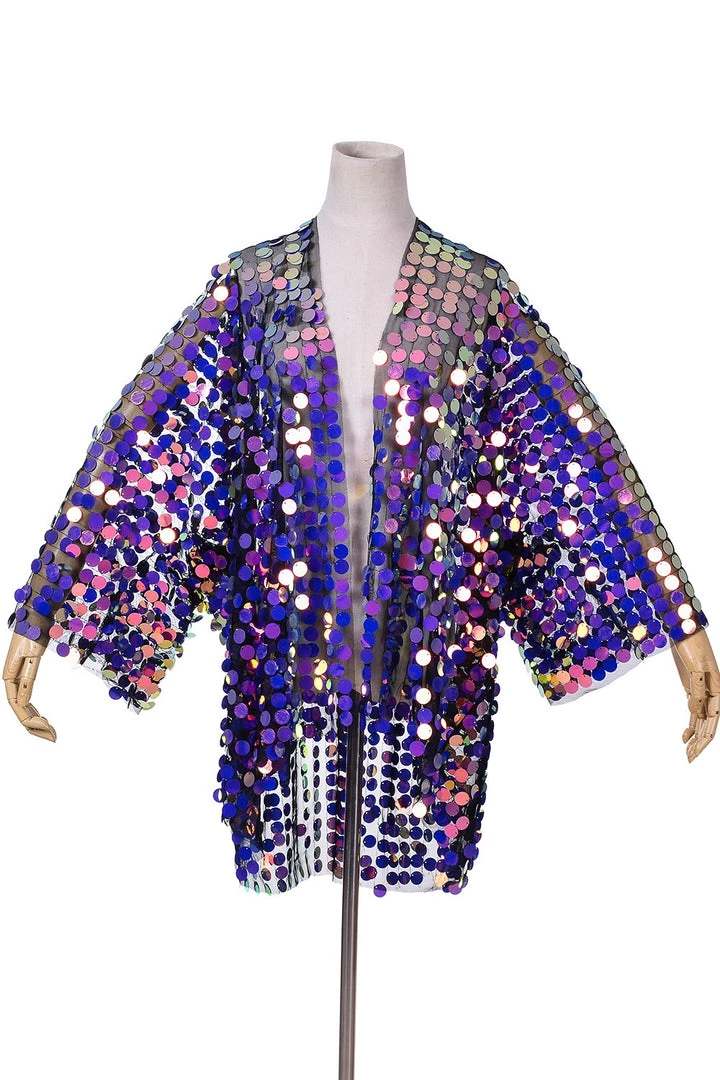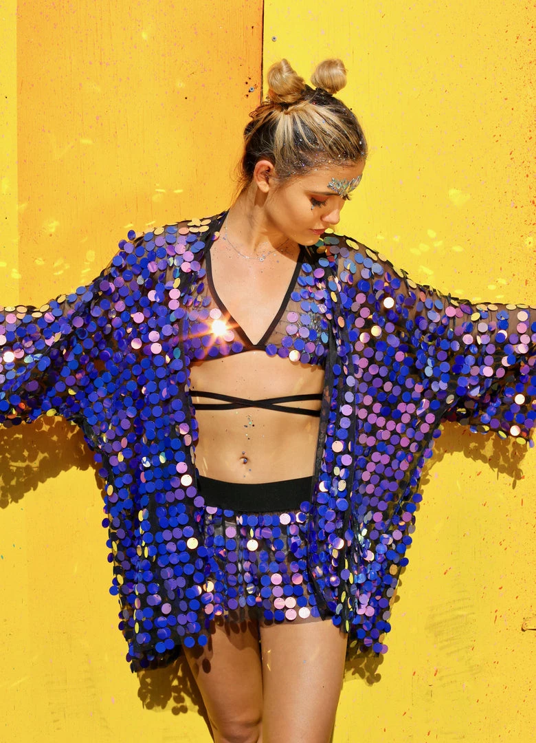 Dance the night away in this electric purple sequin kimono. Each individual sequin reflects the light to shine in every direction. We want you to be the center of attention- that why we ensure the sequins and fabric are of the highest premium material. Exclusively designed and handmade in the USA.