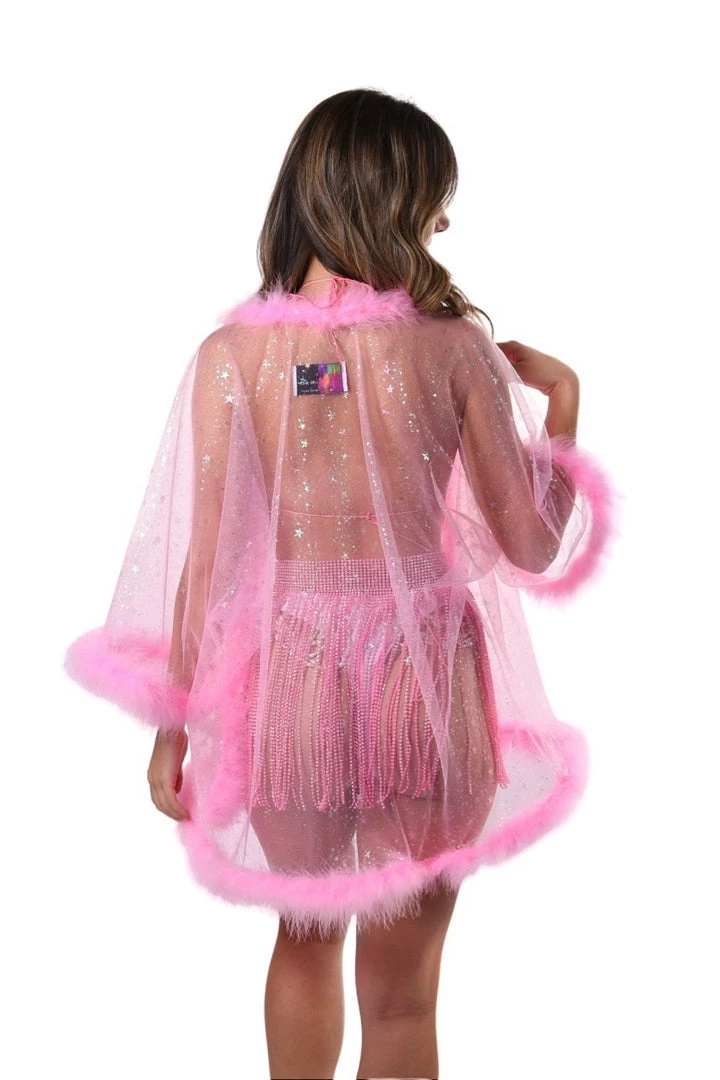 We love an all pink look <3 thats why this cotton candy pink rhinestone set with matching pink stars fuzzy kimono is one of our favorites. Made of high quality materials and premium fabrics.