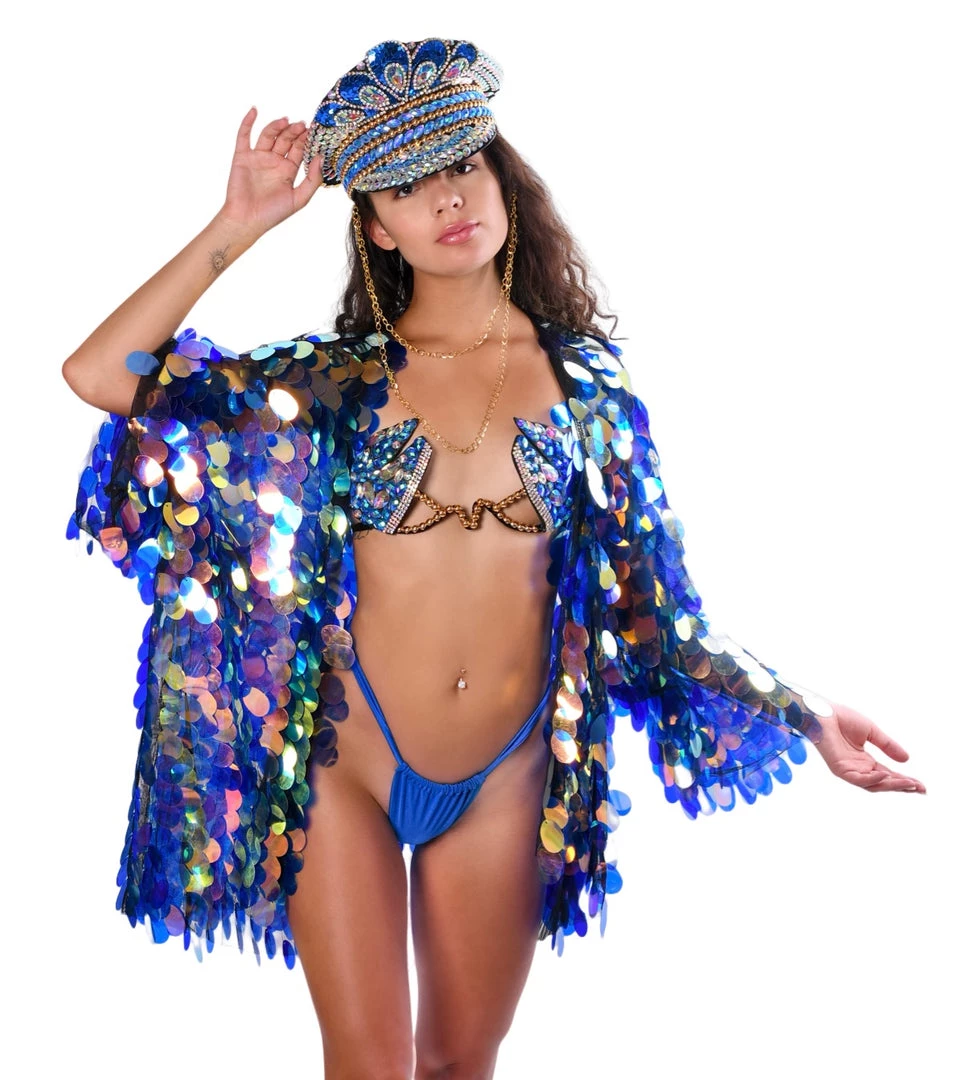 THE LUMI SHOP FULL OUTFITS FULL OUTFIT- Blue Peacock (Top+Bottom+Kimono+Hat)