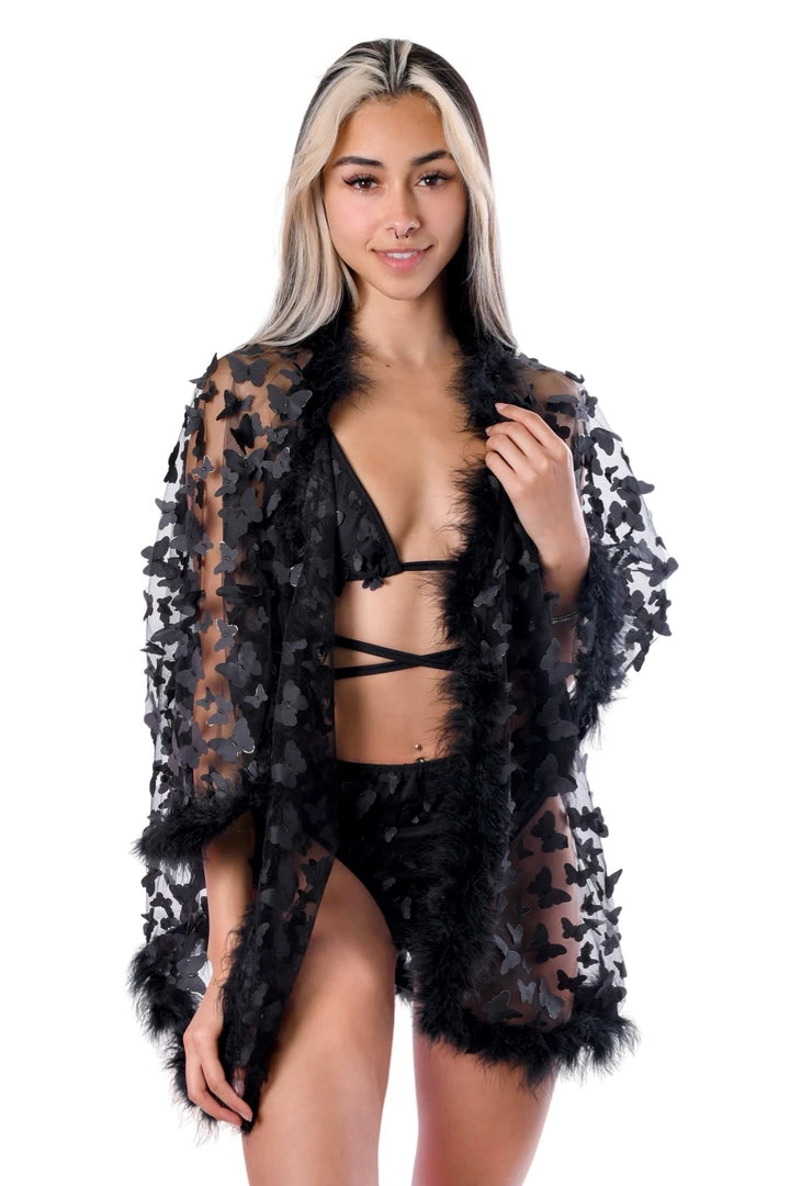 THE LUMI SHOP Fuzzy 3D Kimono- Midnight Butterfly