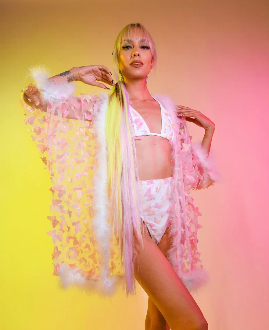 THE LUMI SHOP Fuzzy 3D Kimono- Pink Butterfly FUZZY 3D SETS