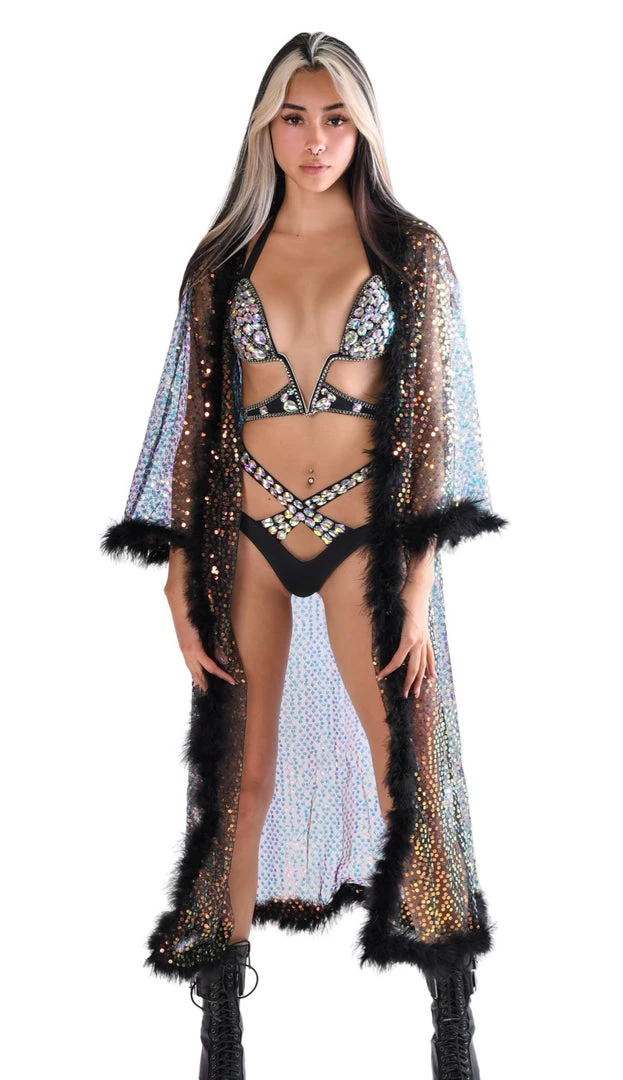 THE LUMI SHOP Fuzzy Long Sequin Kimono- Black Prism SUMMER 2022