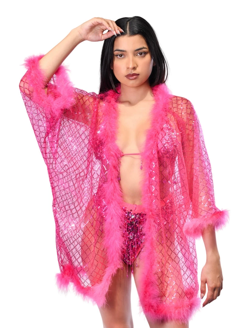 THE LUMI SHOP Fuzzy Sequin Kimono- Rose Pink Signature Sequin Kimonos
