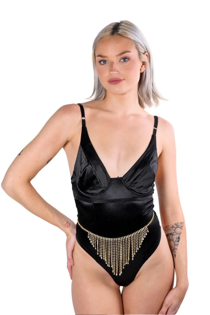 THE LUMI SHOP Gold Rhinestone Tassel Belt Rhinestone Collection