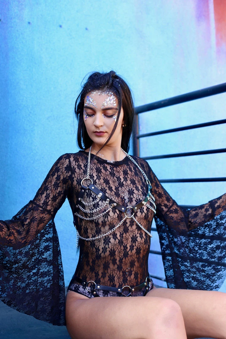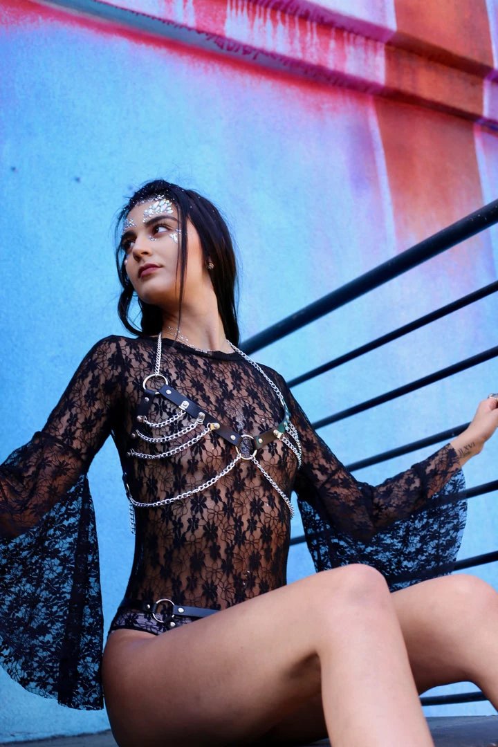 When goth barbie came to the world! Enjoy our exclusive lace bodysuit with flanged sleeves. It is made of super comfy high quality lace fabric that you won’t want to take it off.