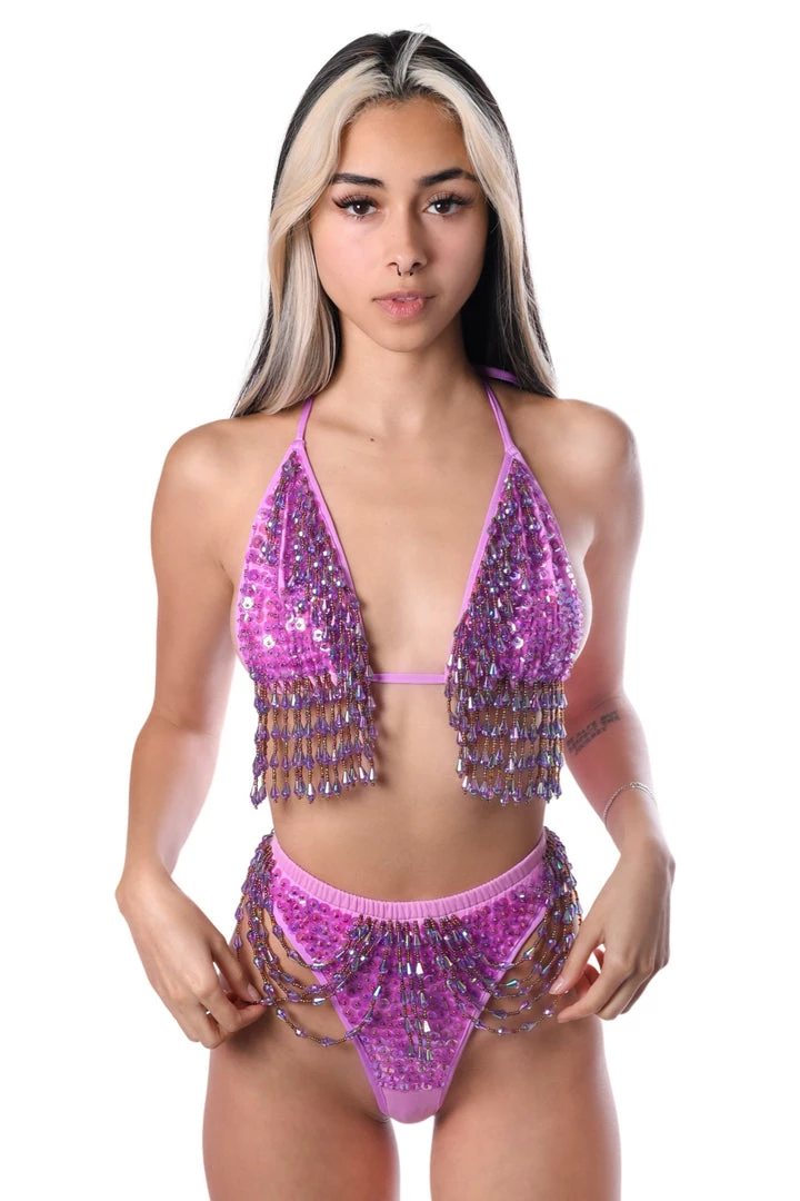 THE LUMI SHOP Hand Stitched Sequin Cheeky Bottoms- Lilac Dreams