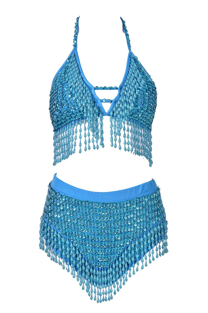 Embrace your inner pixie fairy in this aqua blue sequin set. Mermaids wish they could look this fabulous. Perfect for festivals, or styling up at any colorful event. Our Hand-Stitched sequin collection uses the most premium materials in the industry. Designed exclusively by us here in Socal. Each sequin is hand-stitched one by one to make sure you sparkle throughout the night.