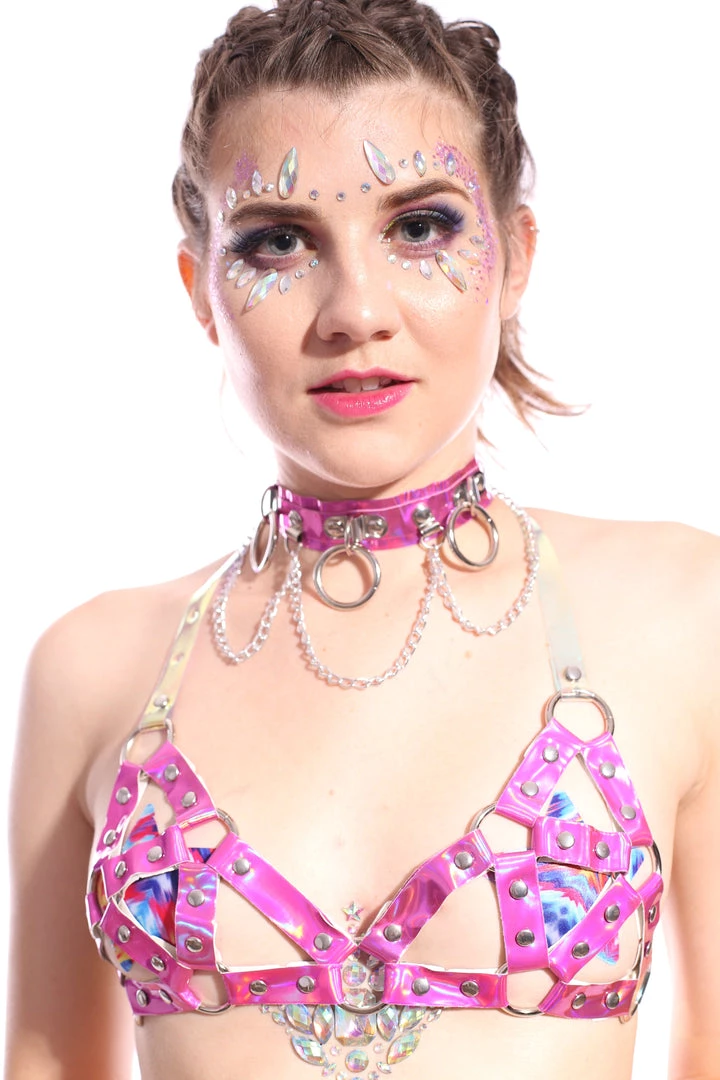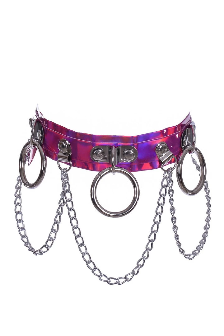 This unique hoop chain chocker features holographic faux leather, a must have chocker for any festival looks. It is essential to keep you stay on top of the trend and stand out from the crowd. Be prepare for lots of compliments 🙂