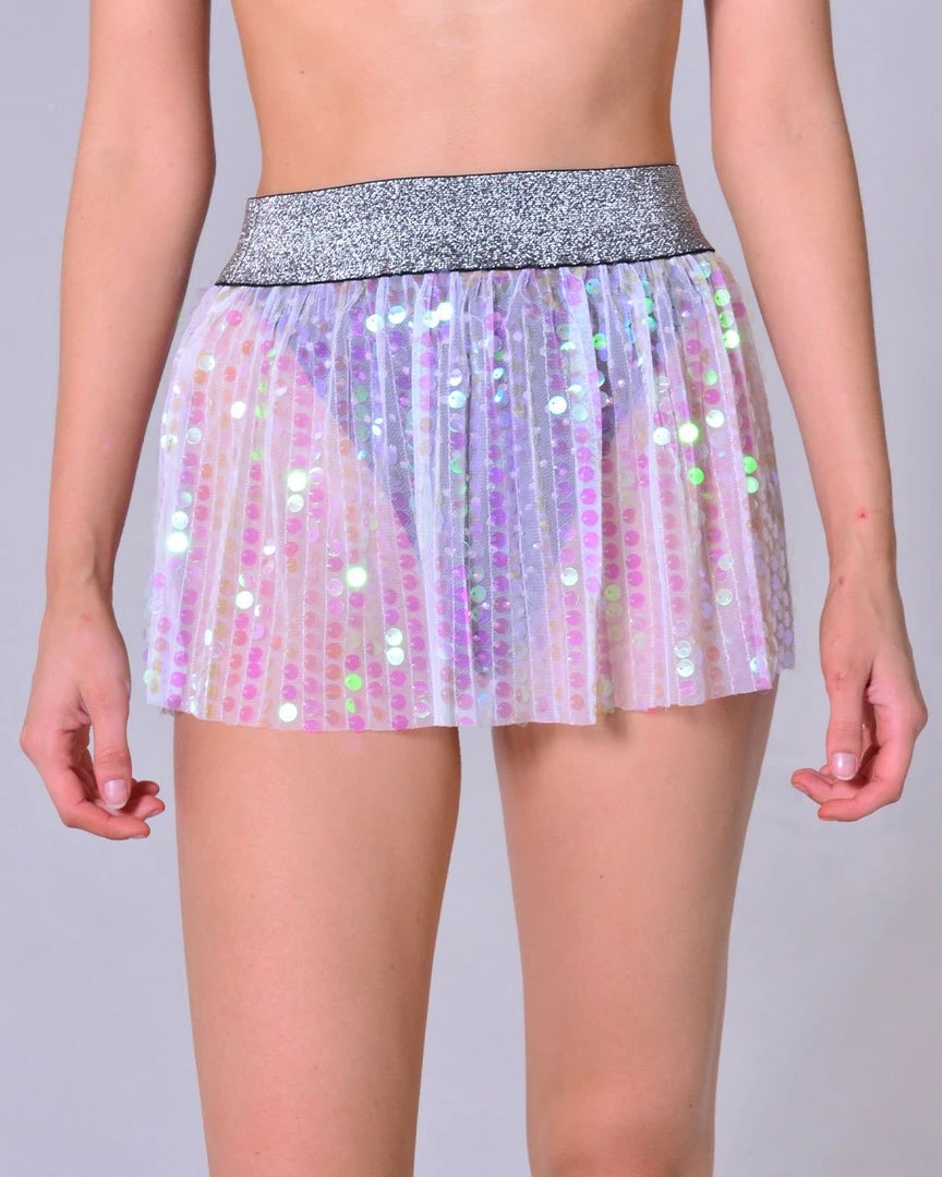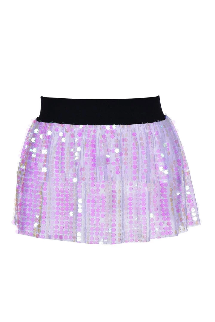 Made of elastic band that’s stretchy on the waist. Sequins do not fall off. Hand wash only, air dry.