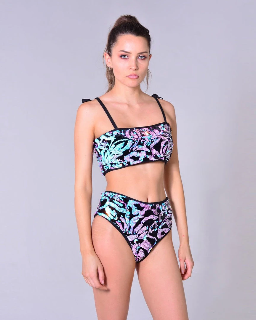 This set contains top & bottom. It’s made with soft comfort inner layer so the sequins won’t touch your skin!