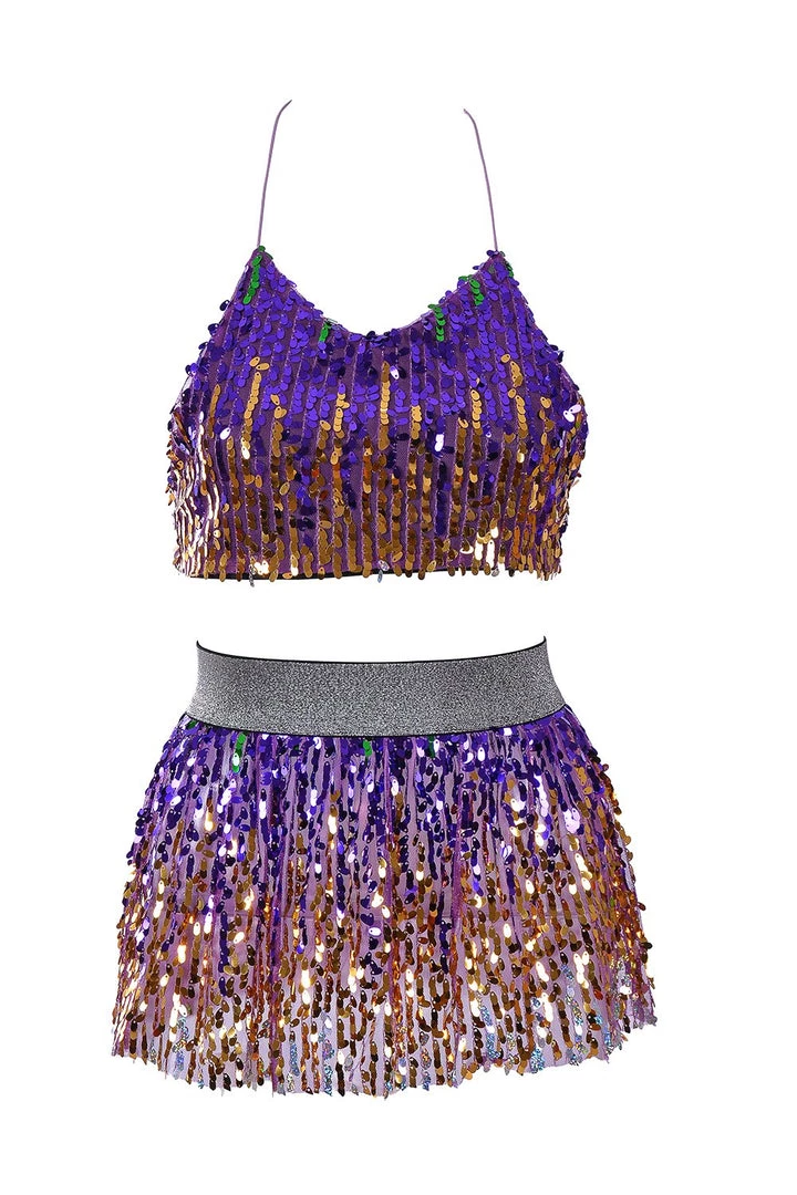 Mermaid sequin set (halter top & mini skirt), the exact pattern might be a little different from one set to another due to random cut of the same fabric.
