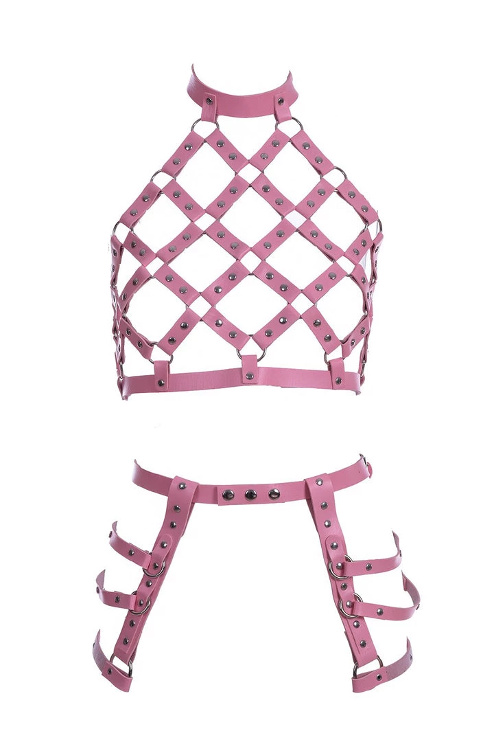 The body harness is made of vegan leather & chains. We make sure that no animals are hurt during the production. Harness is ONE SIZE fits all, comfortably adjust at neck & back. Style with bra/halter tops, or even just the pasties. Go get LIT. Perfect for party wear, costumes, festival clothing, festival fashion, rave wear, & EDM outfits, etc.