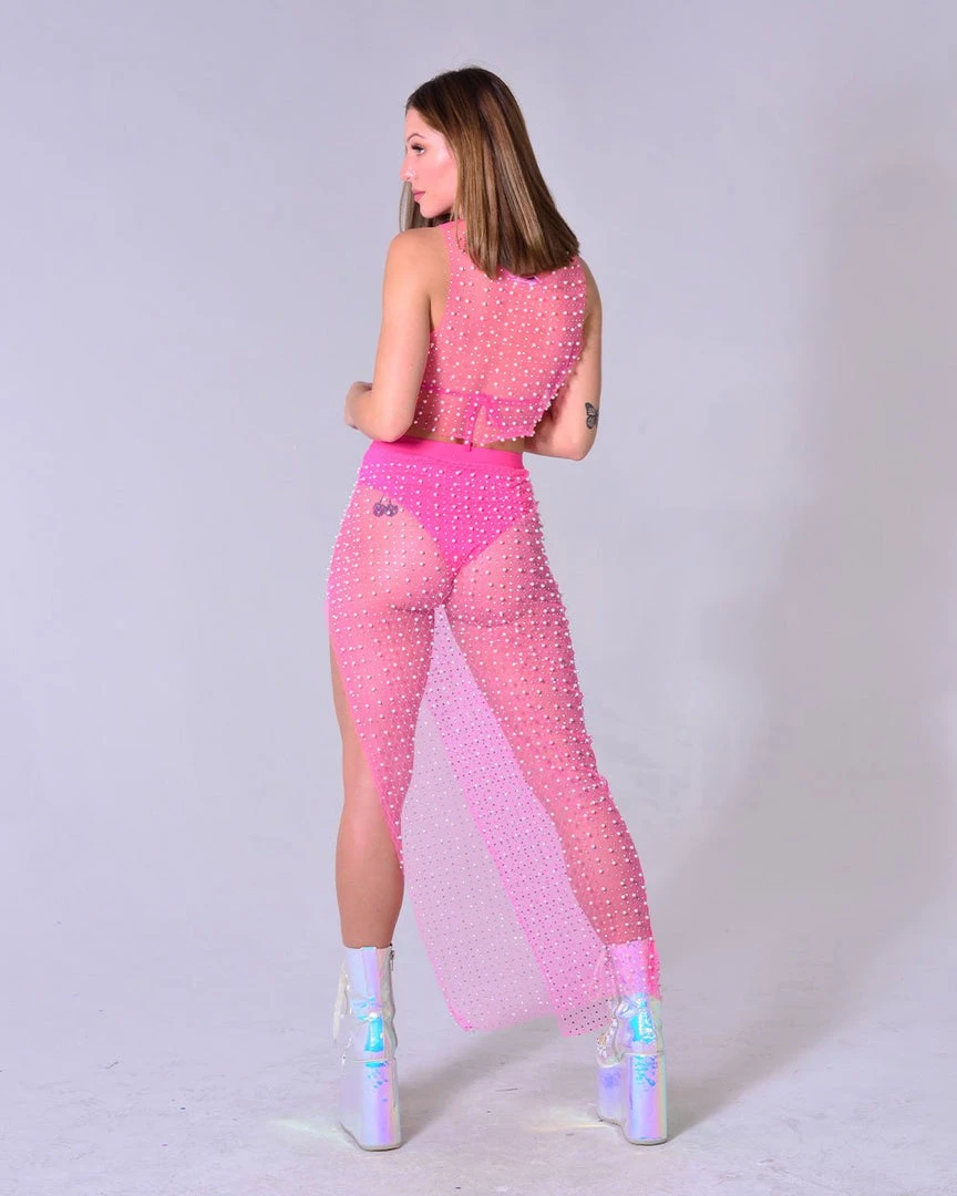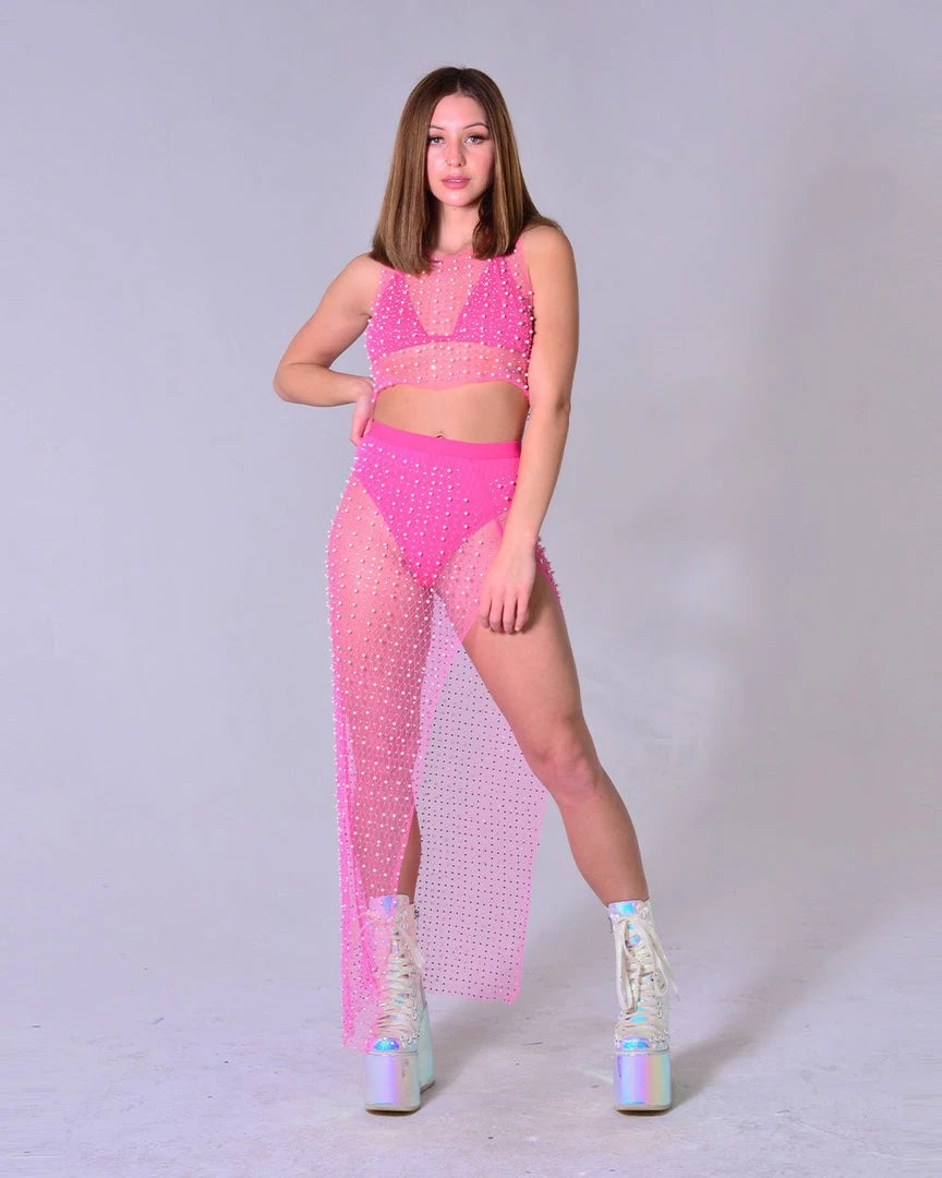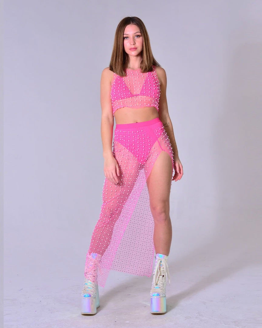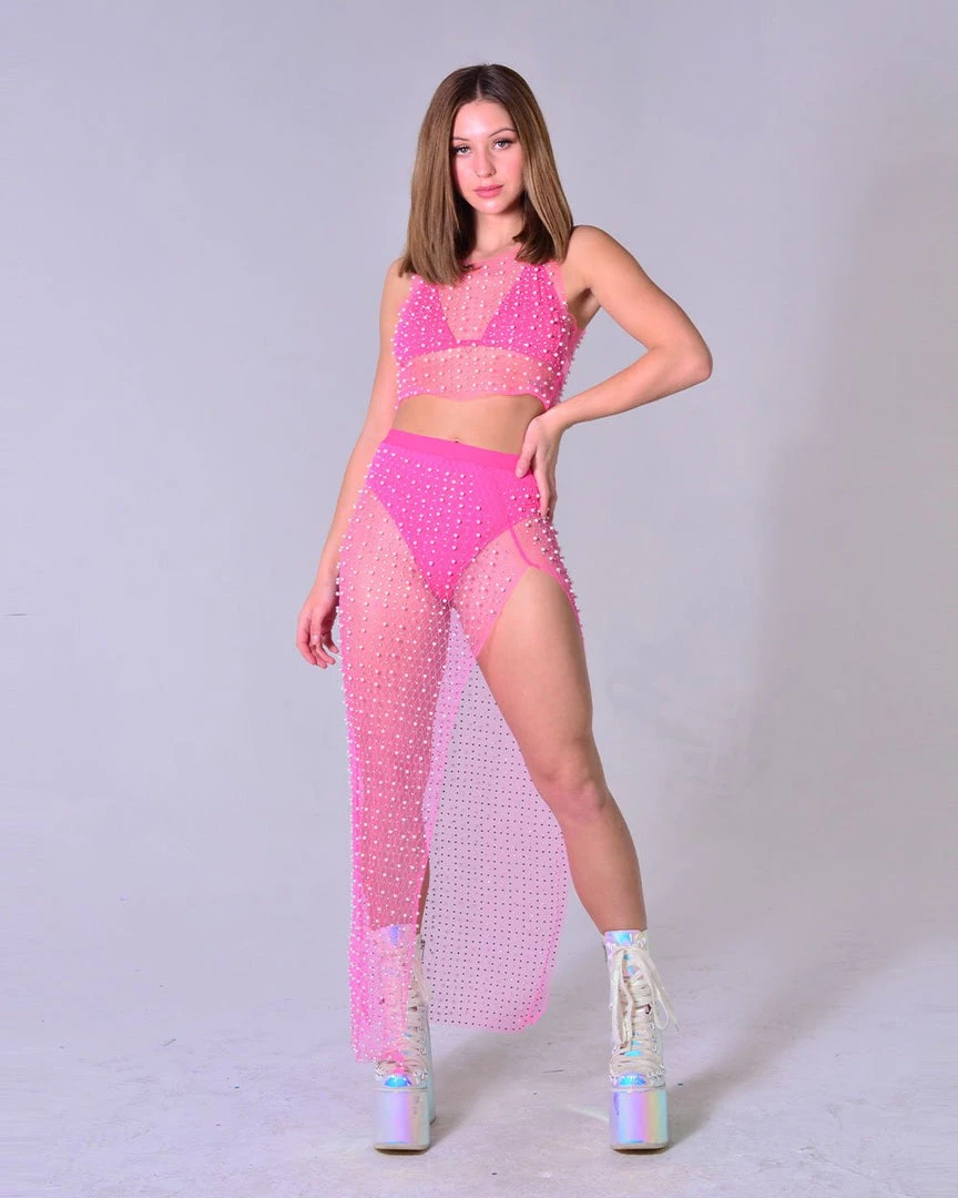 This set contains top & long skirt. Style them separately with different outfits. Lace up details in the back.