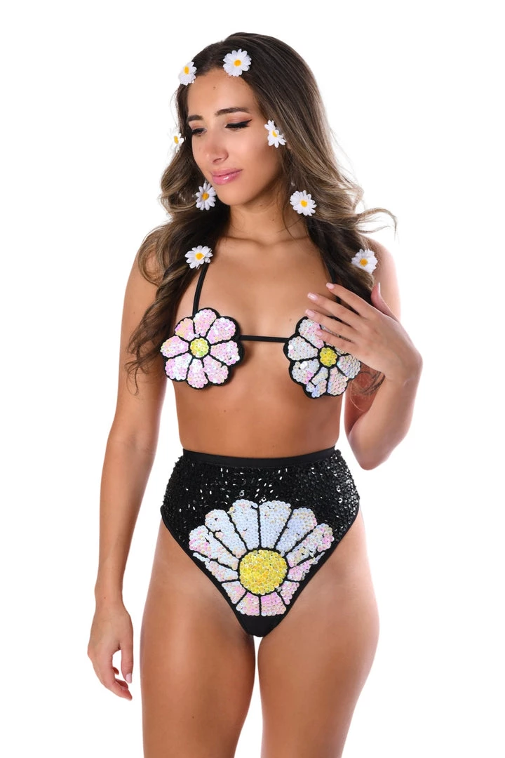 Our brand new collaboration with Sarlotka is here! Glisten under those festival lights in this vibrant sequin daisy set. Made of the highest of quality sequins and premium fabric material.