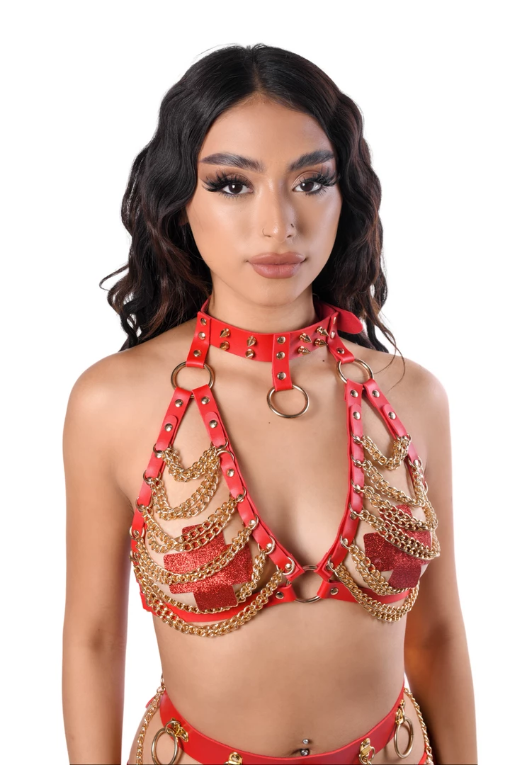 THE LUMI SHOP Red/Gold Harness Chain Top SUMMER 2022