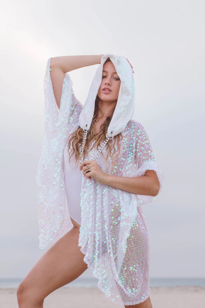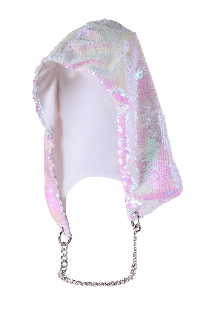THE LUMi SHOP Reversible Sequin Hood – Iridescent & White Sequin Hoods