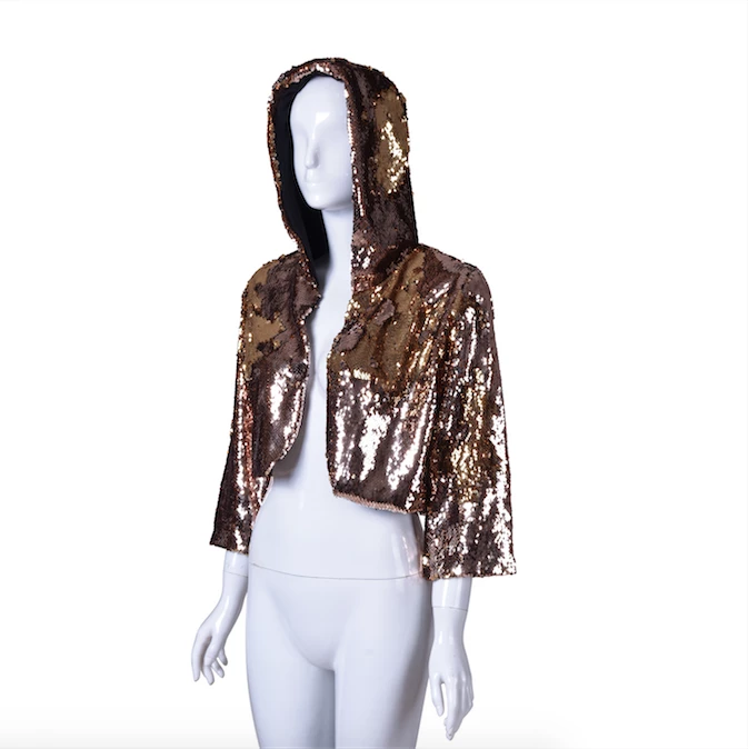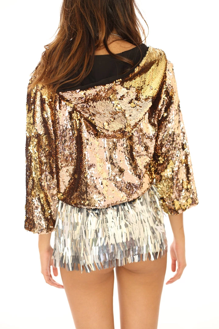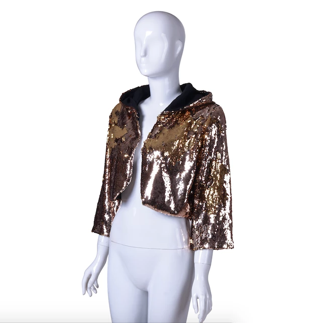 This reversible cropped sequin jacket is made of gold/silver sequins. It is SO cute! Wear if for everyday as well as at festivals. Be ready to get tons of compliments! 😀 It is one size fits XS – XL. The jacket has a soft inner layer that makes the whole experience so different, it is SUPER comfortable!