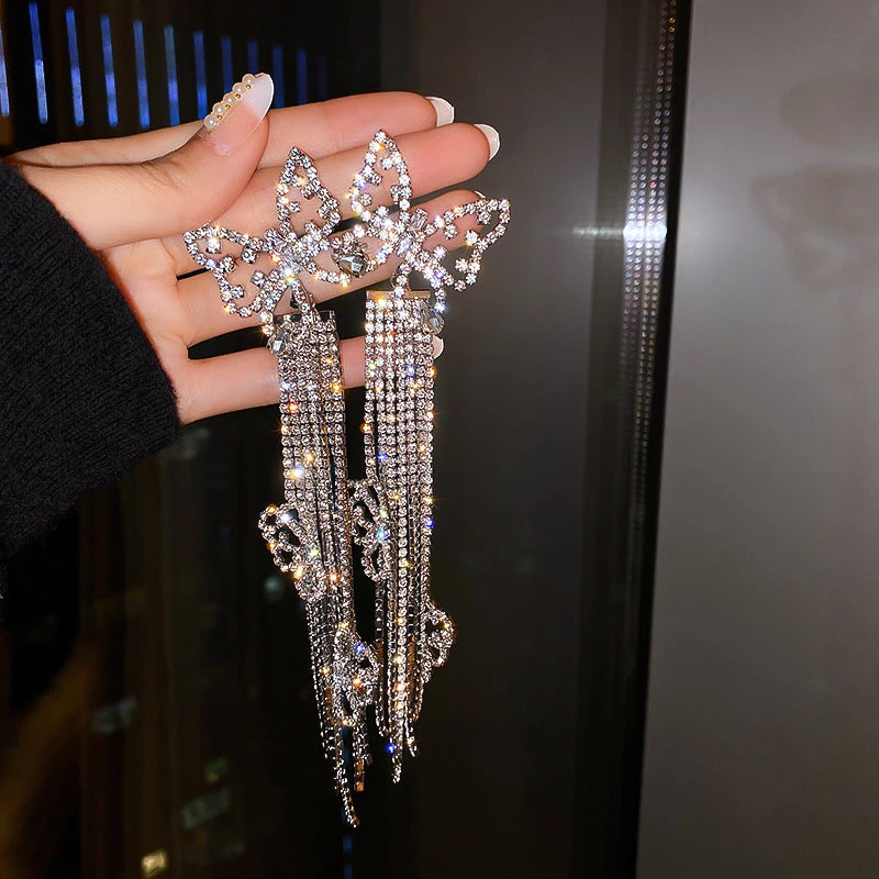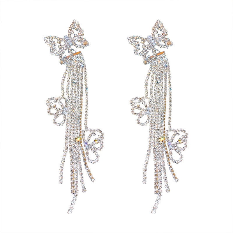 Rhinestone Butterfly Earrings. Each piece is carefully handcrafted that takes more than long time to make. Pair with the our matching rhinestone body jewelers to complete your queen outfit. Good for any occasions.