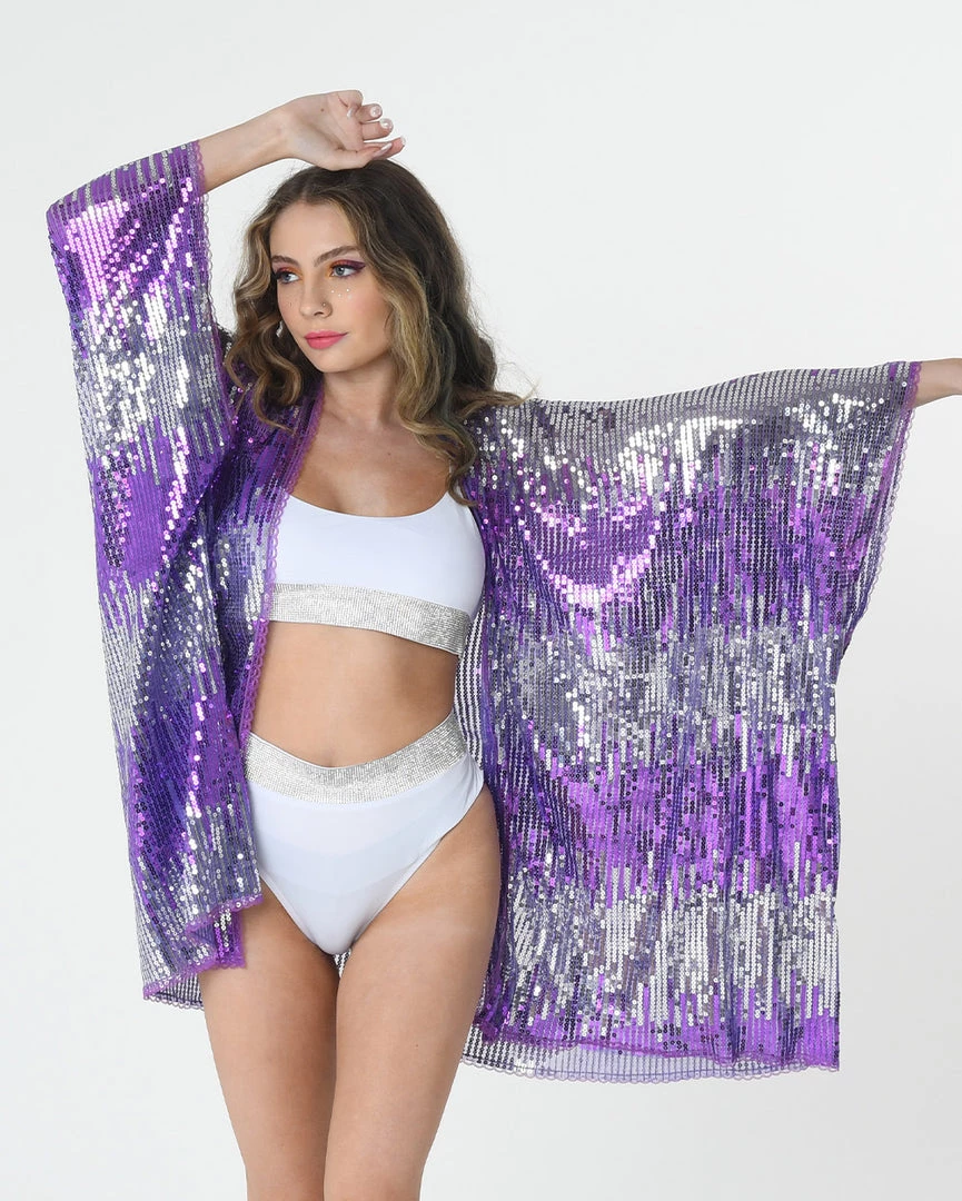 Dance the night away in this star purple sequin kimono. Each individual sequin reflects the light to shine in every direction. We want you to be the center of attention- that why we ensure the sequins and fabric are of the highest premium material. Exclusively designed and handmade in the USA.