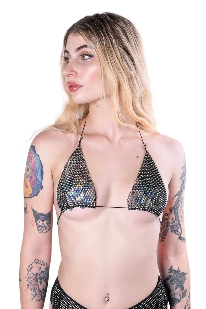 THE LUMI SHOP Sequin Sets Black Rhinestone Bikini Tassel Set