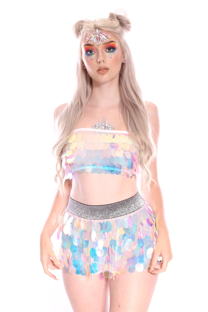 The reversible sequin skirt is exclusively designed and handmade by our studio in California. There is also a matching color reversible sequin crop top to complete the set. It is great for festival wear, rave wear, disco parties & beyond.