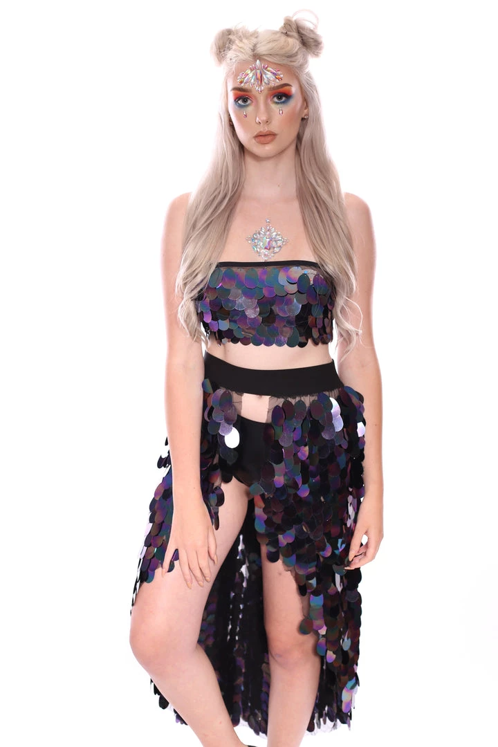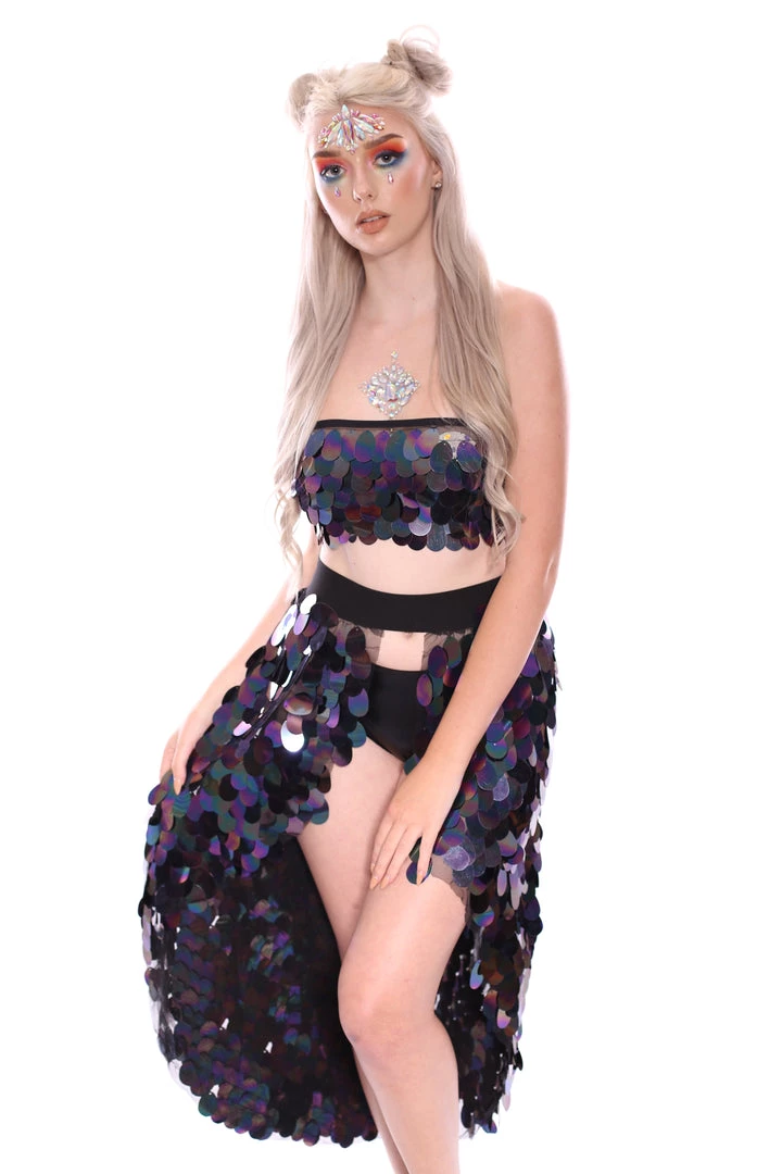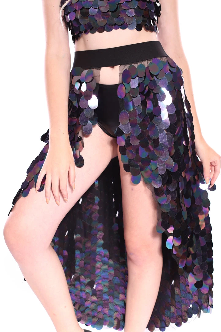 The dark ocean long sequin skirt is cute, sexy & super comfortable to wear. One size fits XS – XL with very stretchy elastic. Pair with any top to get glitz & glam! Great essential for not only festivals, but also everyday wear. Perfect for festival clothing, festival fashion, rave wear, & EDM outfits.