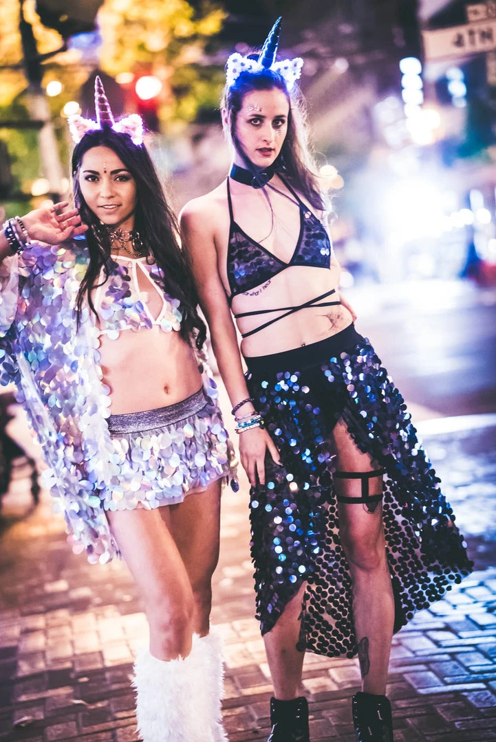 The dark ocean long sequin skirt is cute, sexy & super comfortable to wear. One size fits XS – XL with very stretchy elastic. Pair with any top to get glitz & glam! Great essential for not only festivals, but also everyday wear. Perfect for festival clothing, festival fashion, rave wear, & EDM outfits.