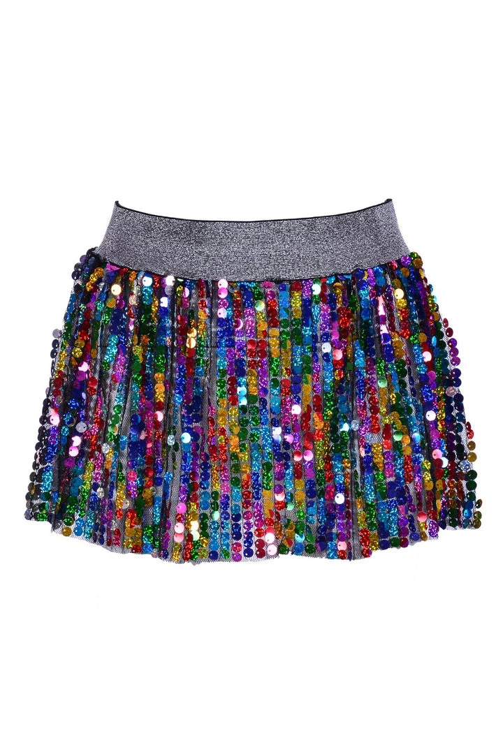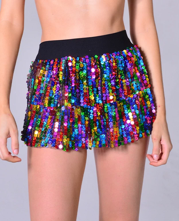 Made of elastic band that’s stretchy on the waist. Sequins do not fall off. Hand wash only, air dry.