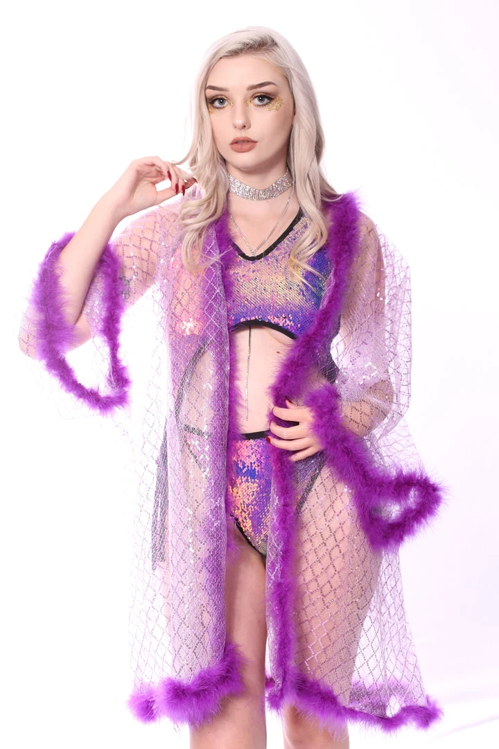Dance the night away in this fuchsia kimono. This babe is exclusively designed in Los Angeles and exclusively produced by us. It is made of high quality fuzz and premium fabric materials.