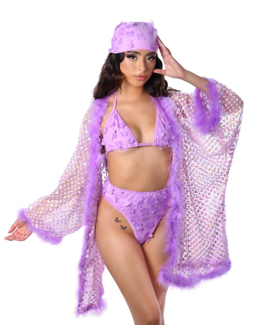 THE LUMI SHOP Signature Sequin Kimonos Fuzzy Sequin Kimono- Lilac Daisy