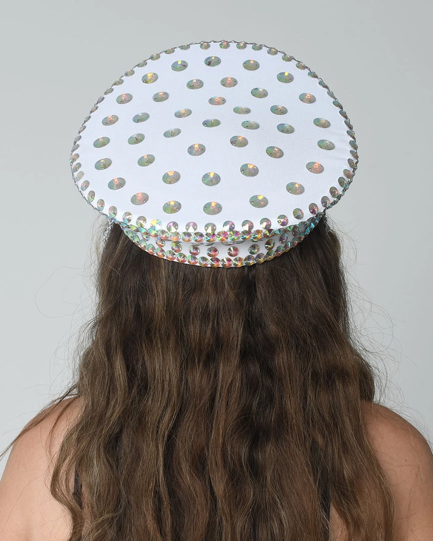 THE LUMI SHOP Silver Holographic Rhinestone Festival Hat SPRING 2022