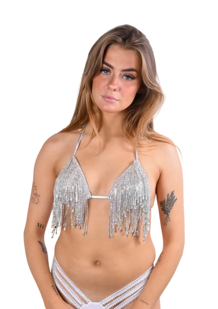 THE LUMI SHOP Silver Rhinestone Jewel Tassel Top