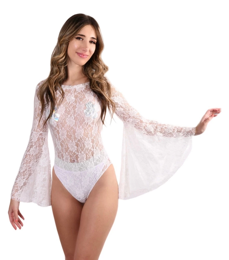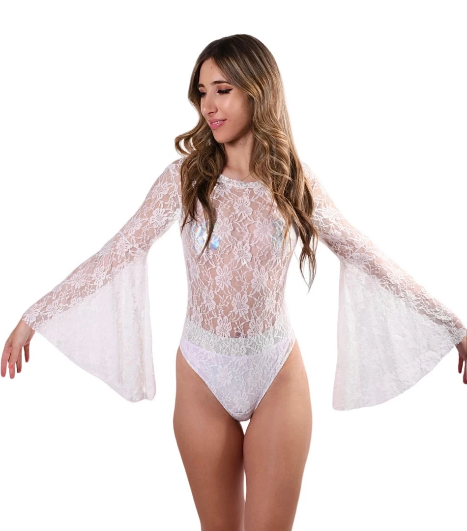 THE LUMI SHOP SPRING 2022 Bell Sleeve Bodysuit- White Lace