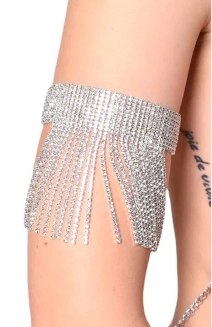 This sparkly diamond tassel arm cuff is the perfect accessory to any outfit. Made of high quality sparkles that shine under the light.