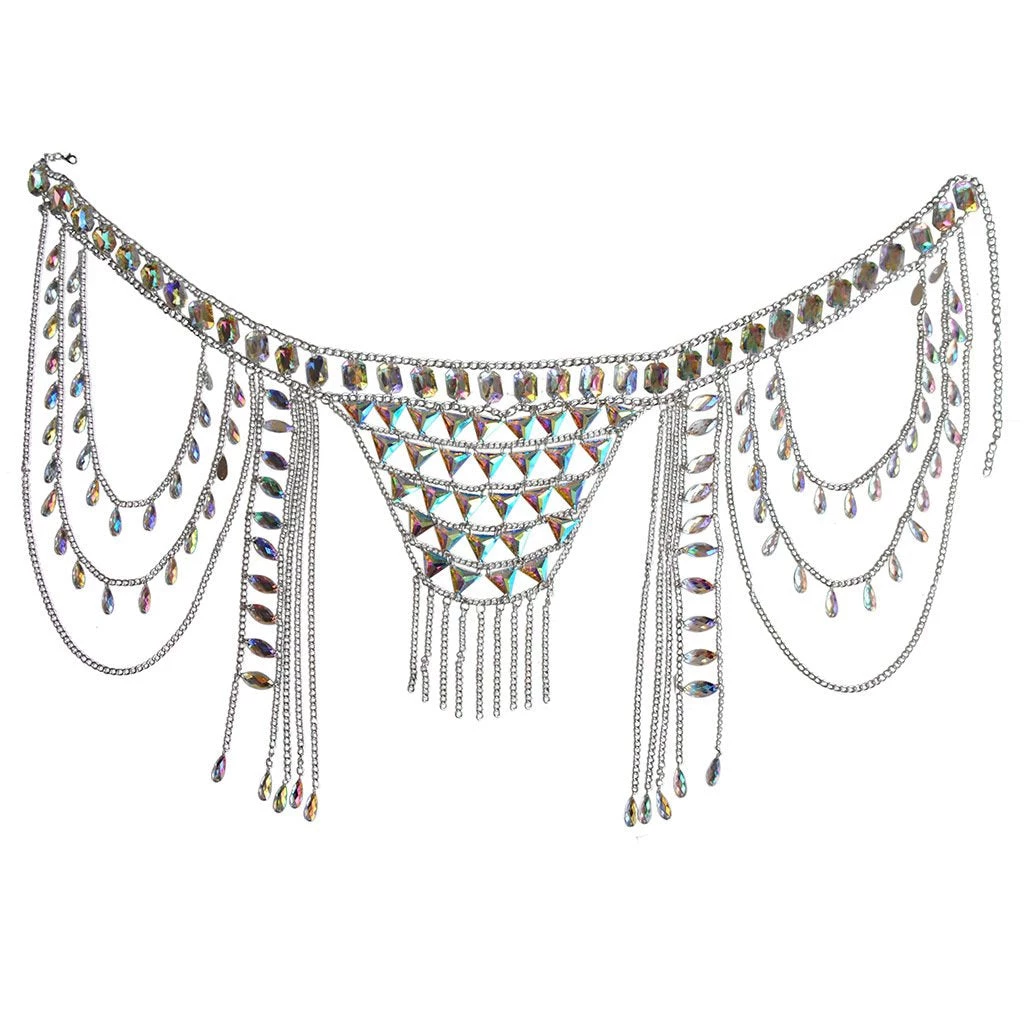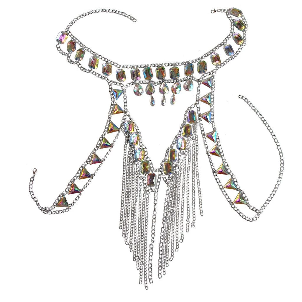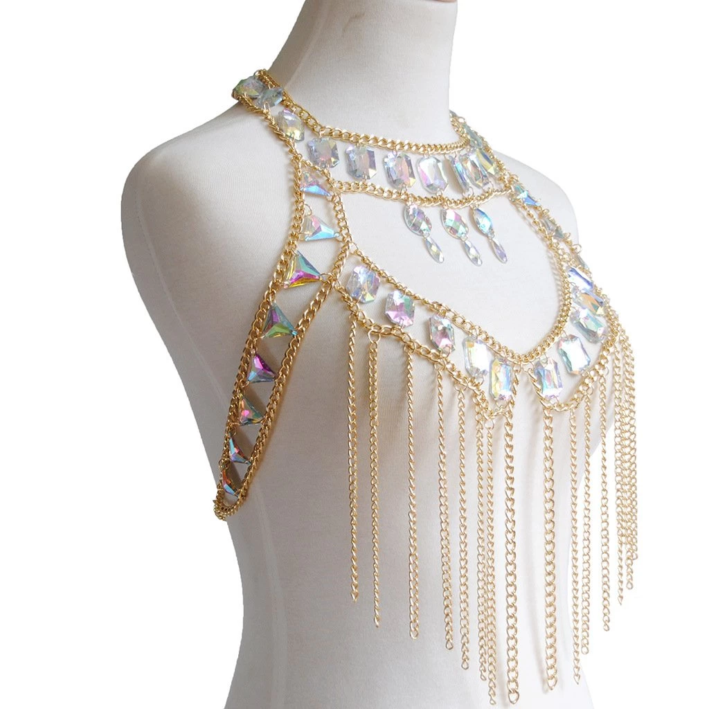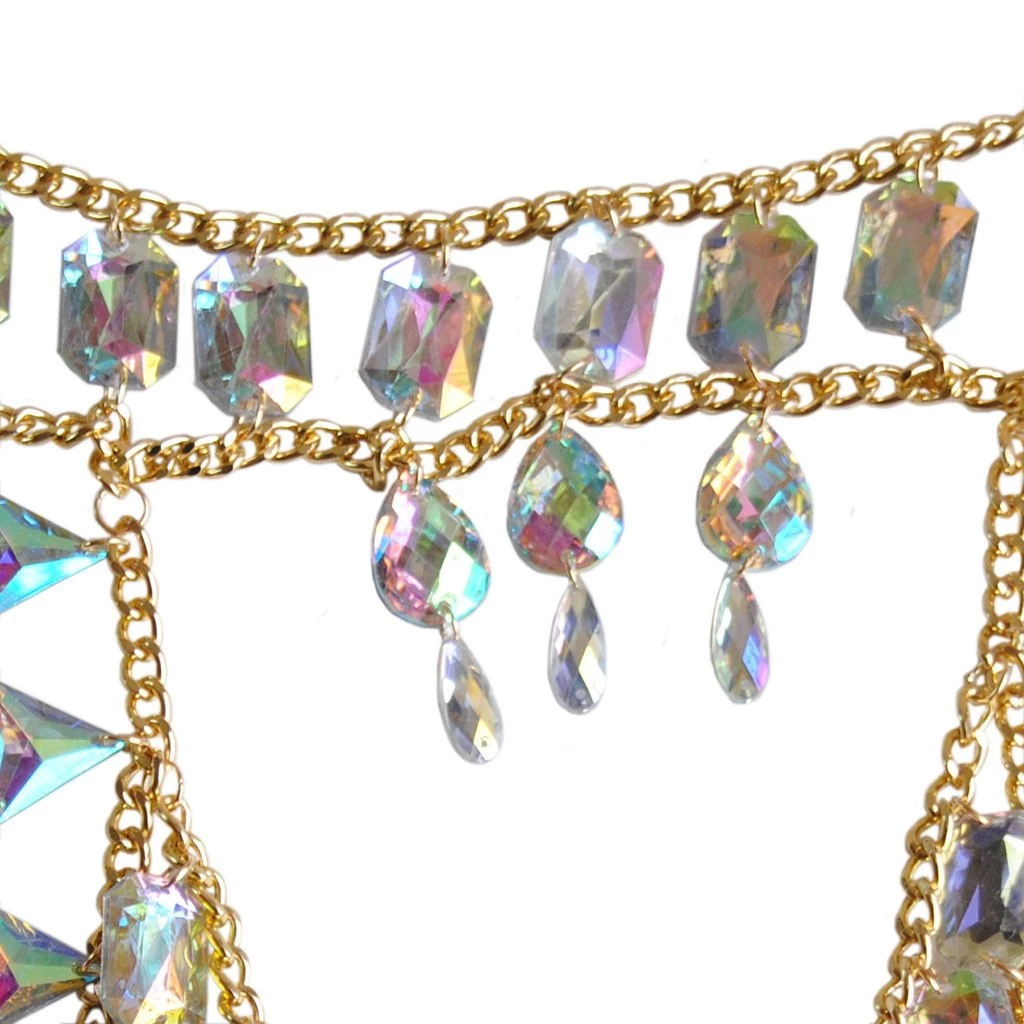 This iridescent dreamy dazzle unicorn gem set is made of handmade rainbow iridescent gem pieces & silver chains, pair with a silver holographic pasties, a black high waist bottom and our sequin kimono for a complete look and be prepare to get lots of compliments at festivals. Easy to wear.