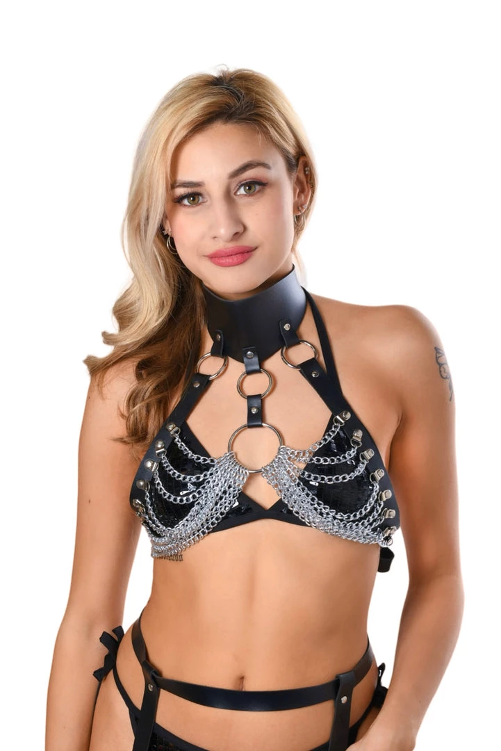 The body harness is made of vegan leather & chains. We make sure that no animals are hurt during the production. Harness is ONE SIZE fits all, comfortably adjust at neck & back. Style with bra/halter tops, or even just the pasties. Go get LIT. Perfect for party wear, costumes, festival clothing, festival fashion, rave wear, & EDM outfits, etc.