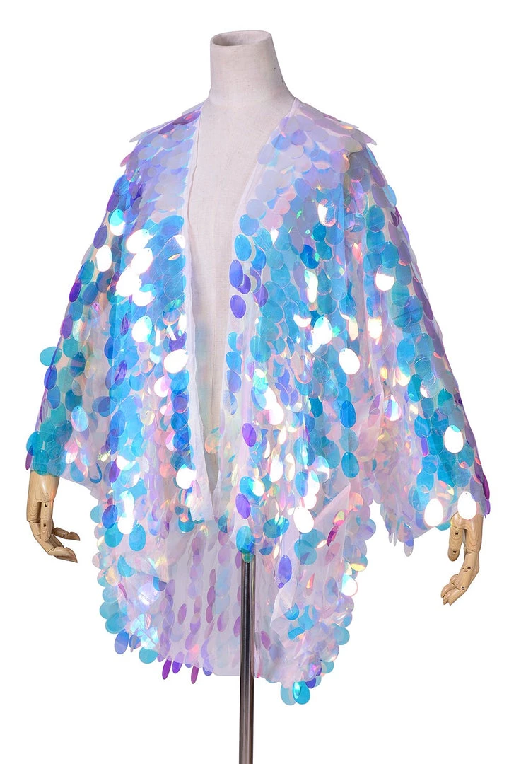Our unique & beautiful iridescent sequin kimono is exclusively designed and handmade in the USA. We use only the highest quality fabrics and sequins, spreading positive vibes through your movement. This amazing unisex kimono features massive sparkle & shine with sequins that reflect green, blue, pink and white transparent colors. In the sunlight, the sequins can be seen for miles, during the night, it diffracts light from every direction, no matter how far away.
